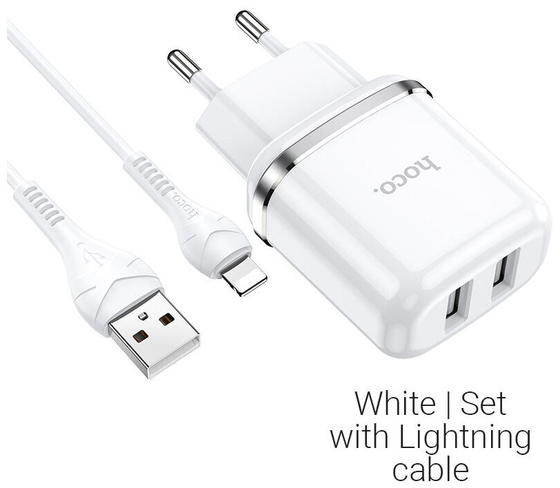 Сетевое зарядное устройство HOCO N4 Aspiring 2xUSB с Кабелем USB - Lightning, 2.4A, 10.8W, белый