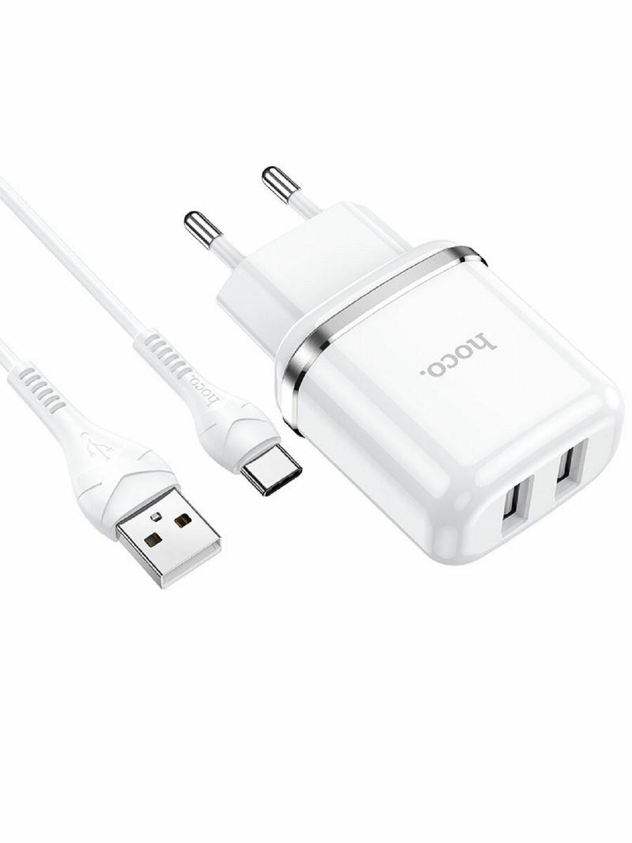 Сетевое зарядное устройство Hoco N4, 2 USB - 2.4 А, кабель Type-C 1 м, белый Hoco 7687029