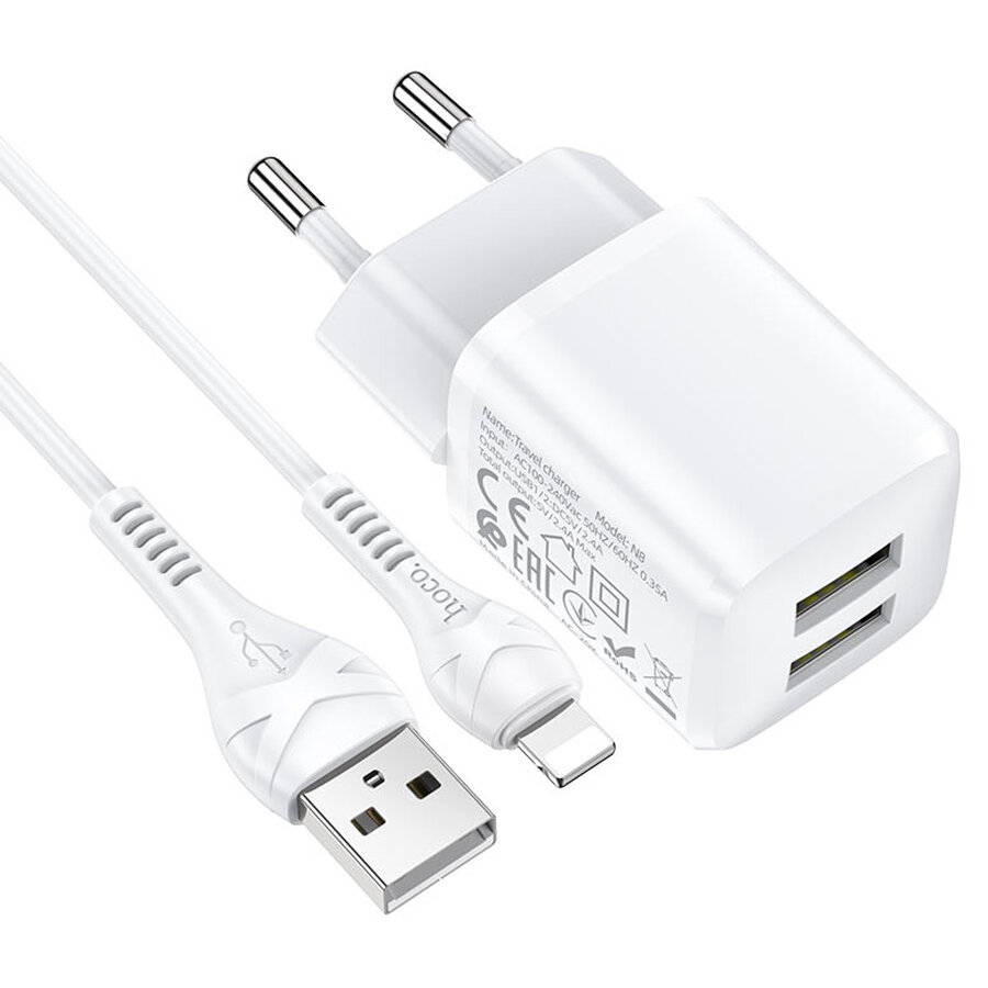 Сетевое зарядное устройство HOCO N8 Briar 2xUSB с Кабелем USB - Lightning, 2.4A, 10.8W, белый