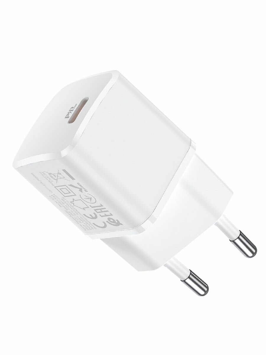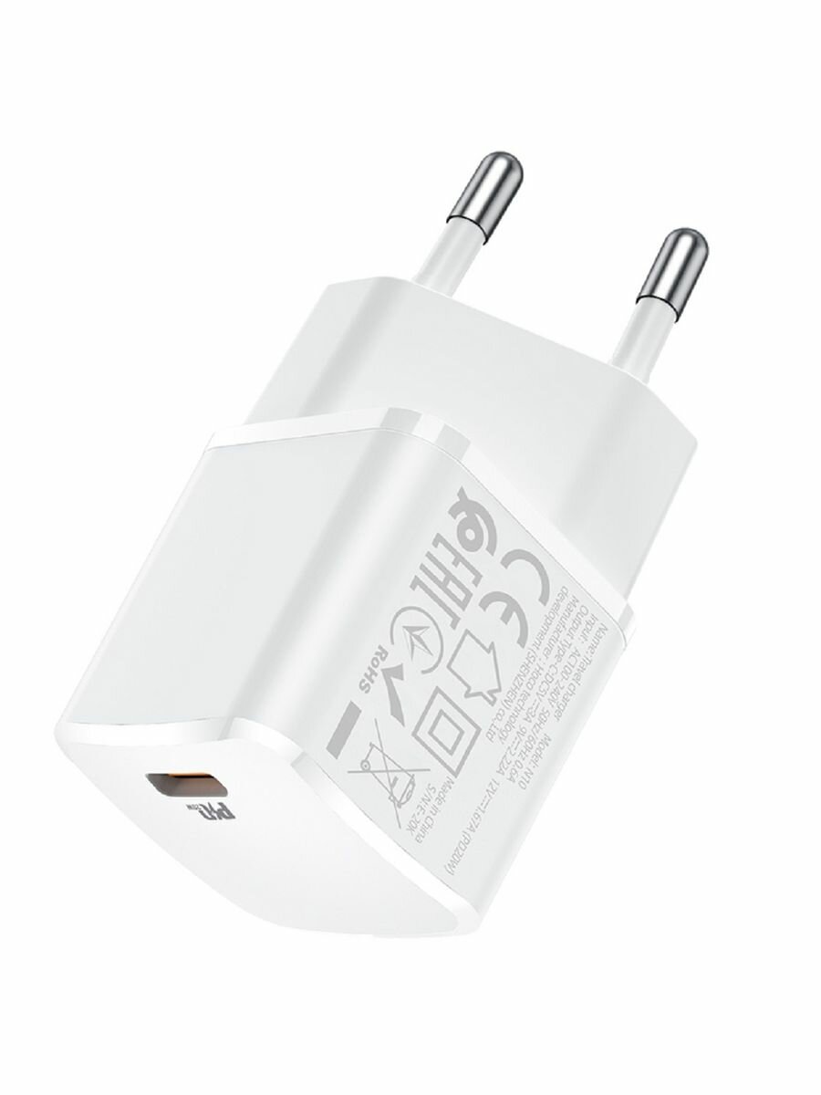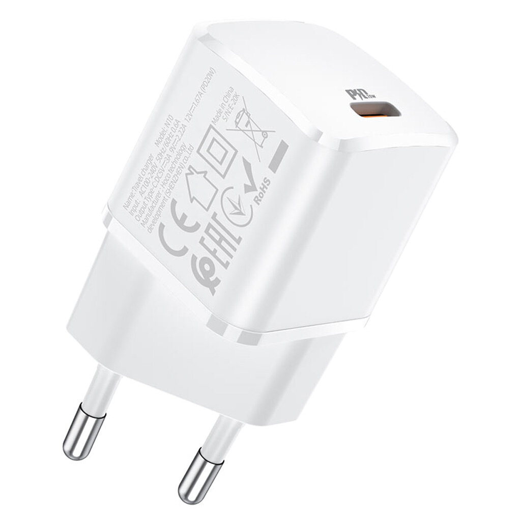 Блок питания сетевой Type-C HOCO, N10, пластик, PD20W, QC3.0, цвет: белый
