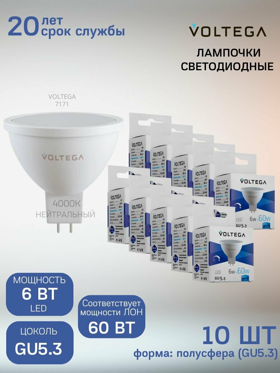 Лампа светодиодная Voltega 7171, GU5.3, 6 Вт, 4000 К