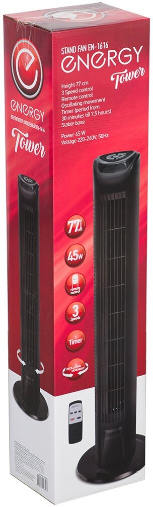 Вентилятор напольный Energy EN-1616 Tower, 45 Вт, 3 скорости, черный