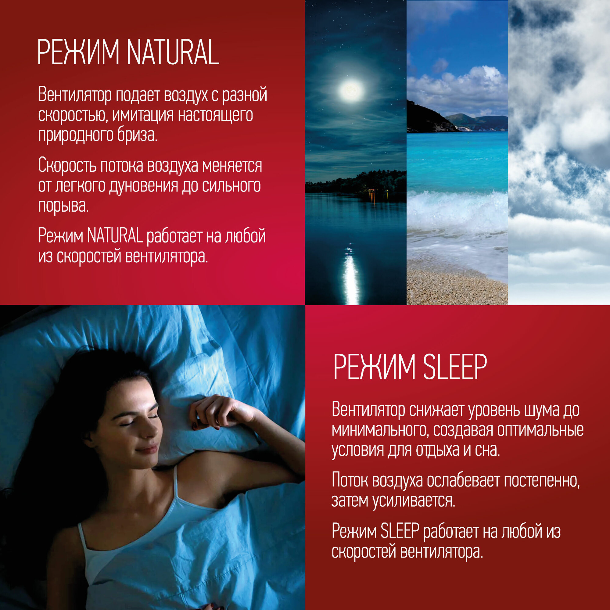 На режиме скорости Low тихий, на максимальной шумный,но не мешающий шум. Компактный и высота идеально подходит для обдува сидящего или лежащего на кровати. Угол авто-поворота, на глаз, 50 градусов и этого достаточно. Разнообразие режимов (которыми вряд ли кто-то будет активно пользоваться) |