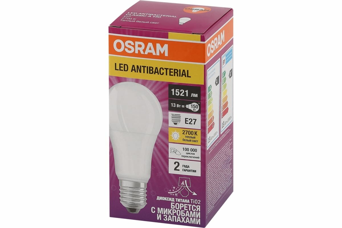 Лампа светодиодная OSRAM Antibacterial LCCLA100, E27, 13Вт, 2700 К