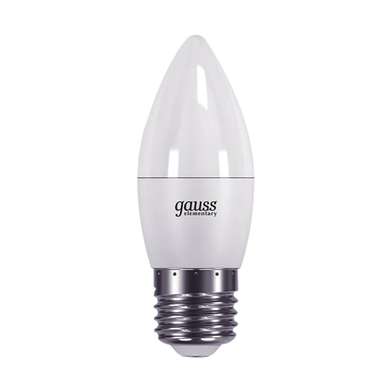 Светодиодные лампы GAUSS Лампа светодиодная Elementary 6Вт свеча 3000К тепл. бел. E27 420лм GAUSS 33216