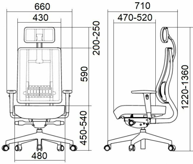 | Регулировка | высоты подголовника / высоты подлокотников / высоты сиденья / жесткости качания / наклона спинки |