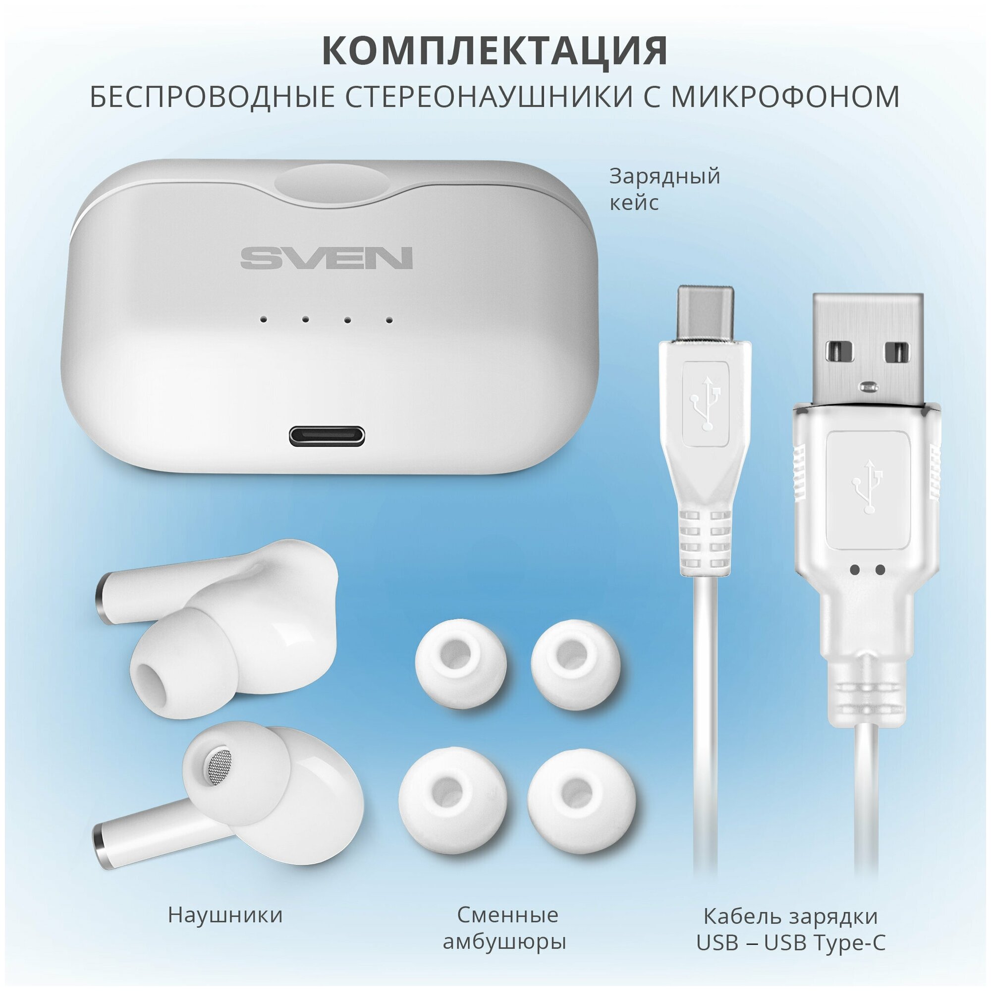 Наушники SVEN E-701BT,бел(BТ, TWS) беспровод, стерео