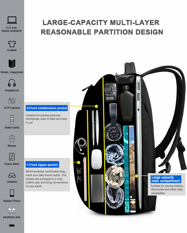 Рюкзак с Usb, для ноутбука, Tigernu T-B3893 черный, 15.6" Tigernu 5601219 интересное: