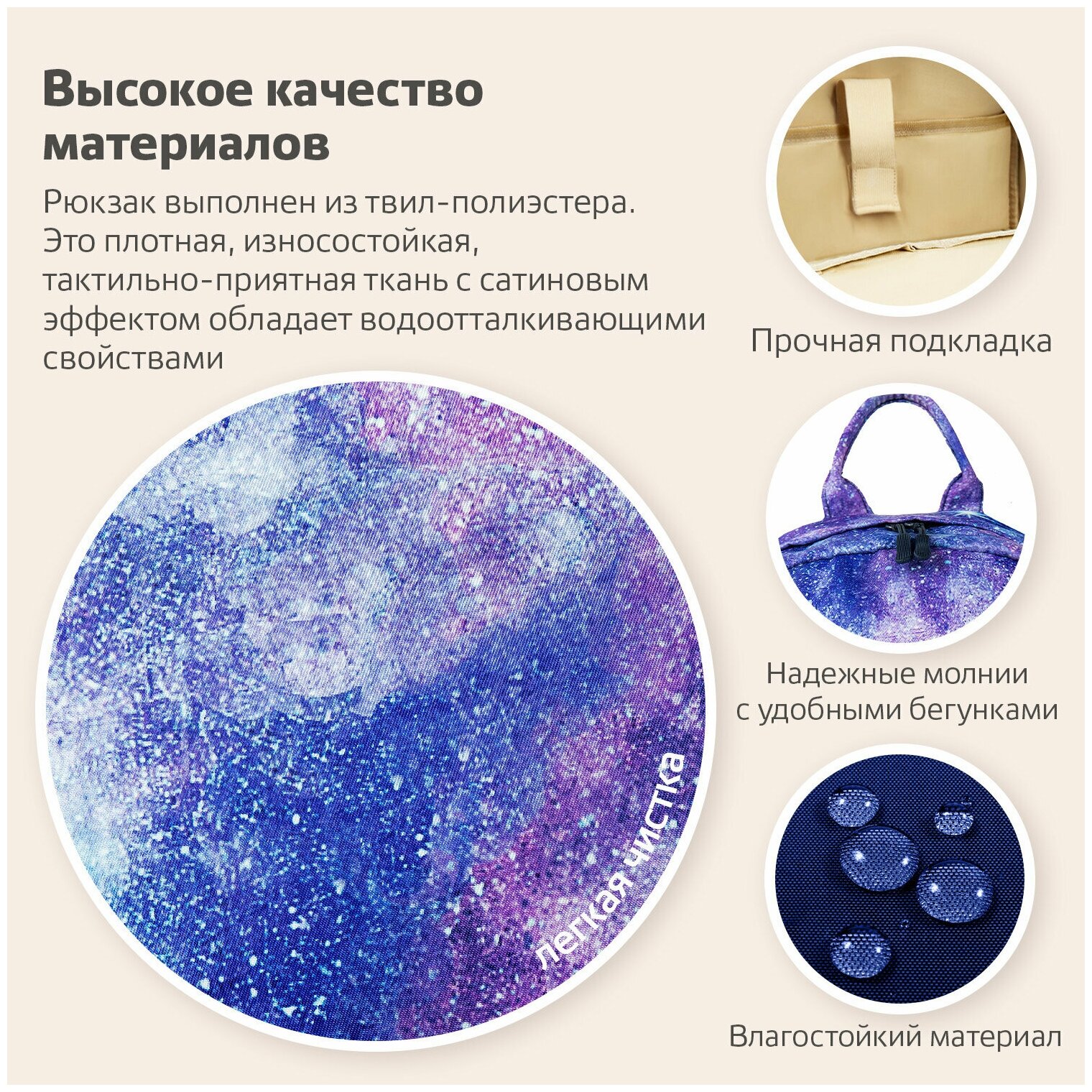 СохранитьРюкзак BRAUBERG DREAM универсальный с карманом для ноутбука, эргономичный, «Galaxy», 42×26×14 см, 270772 интересное: