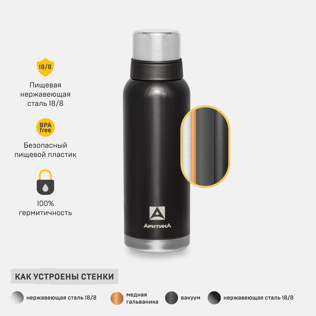 Термос Арктика, 750 мл., 106-750C, чёрный