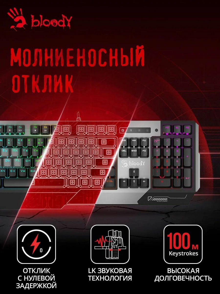 Клавиатура A4TECH Bloody B865R, USB, серый + черный