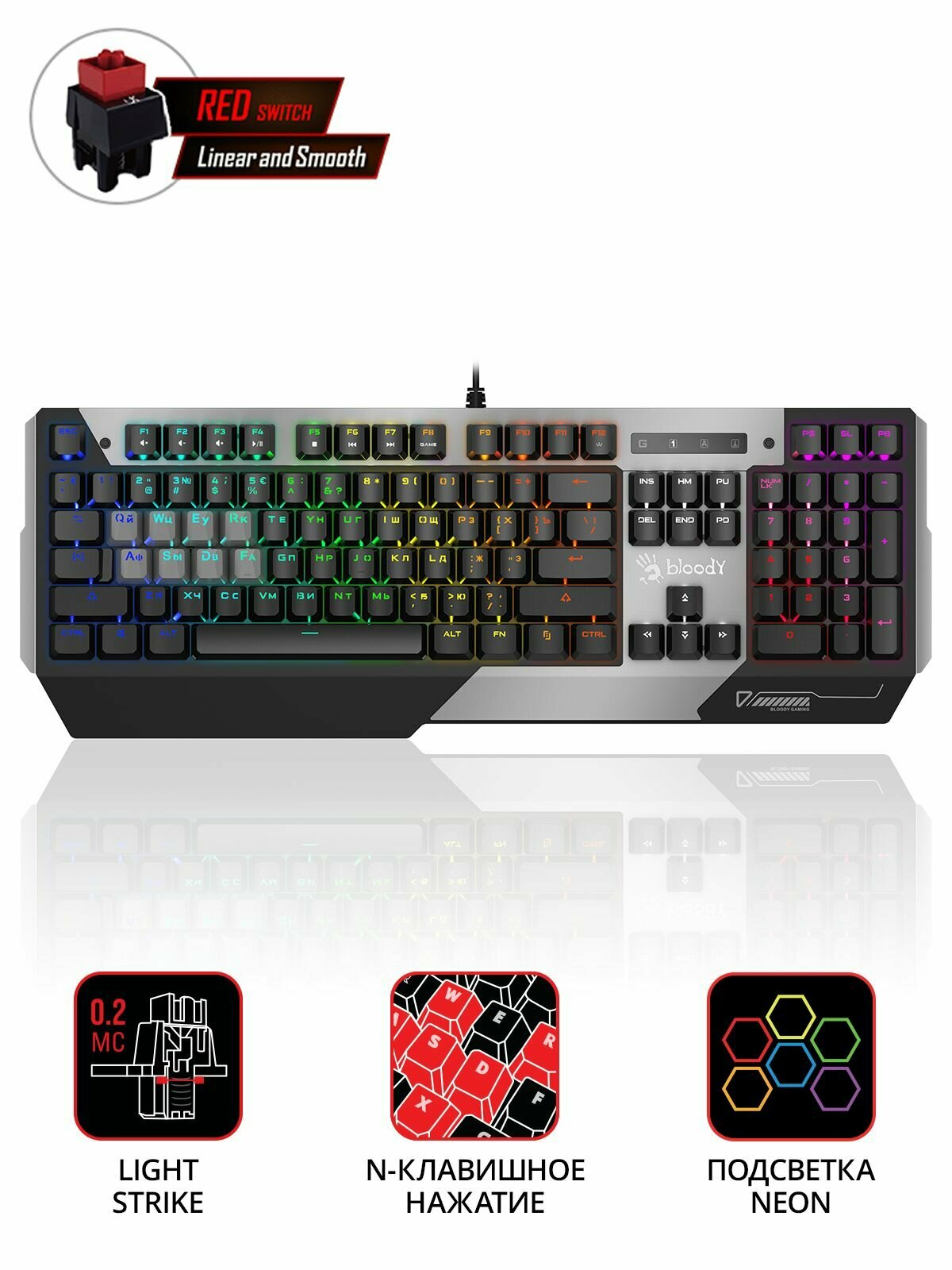 Клавиатура A4Tech Bloody S87 Energy, русские и английские буквы (s87 usb energy ash)