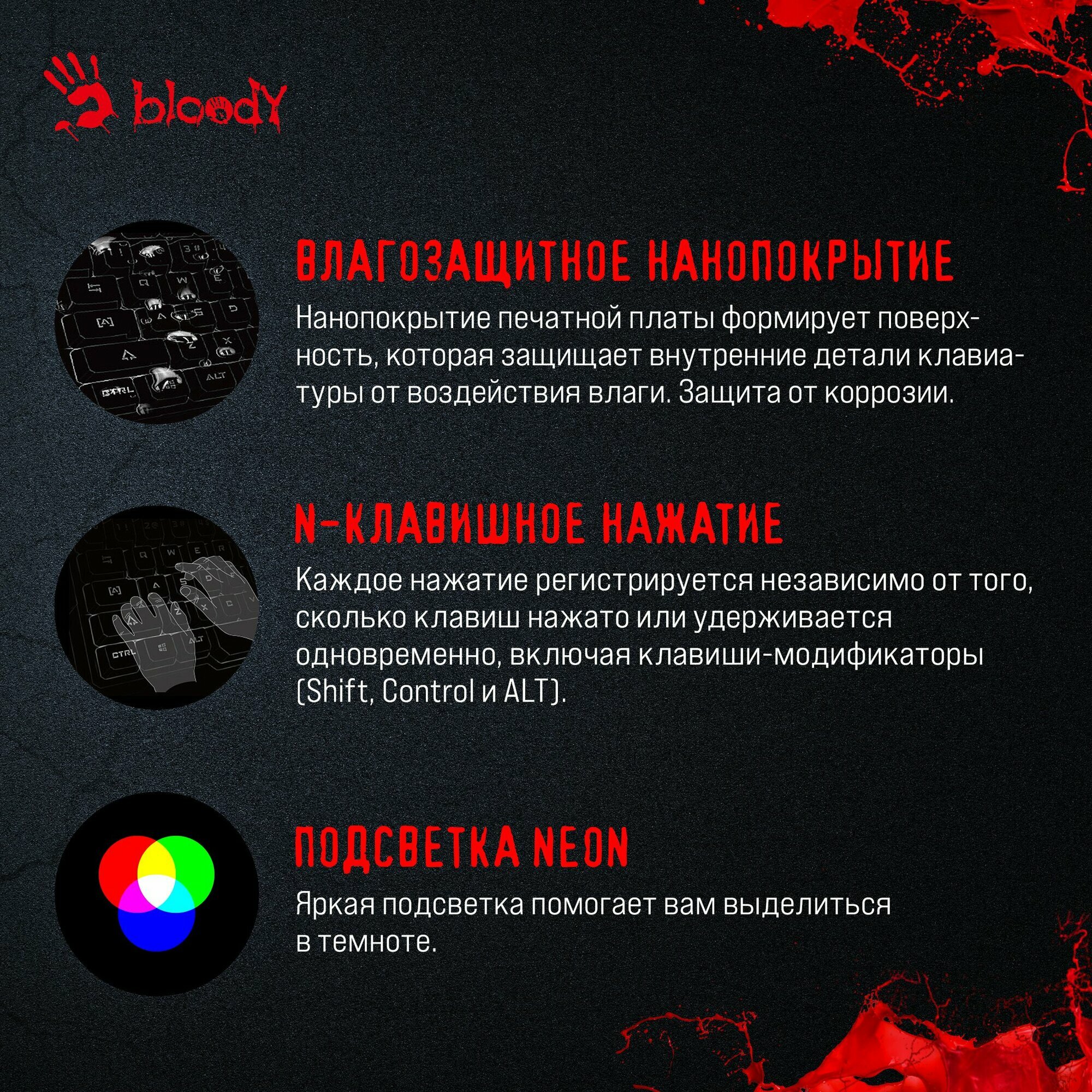 Клавиатура A4Tech Bloody B950, русские и английские буквы, черный (b950)