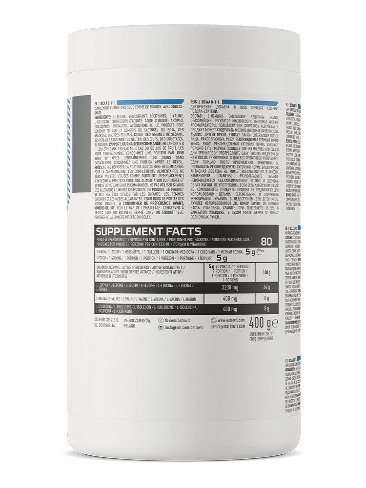 Купить BCAA в порошке Ostrovit BCAA 8:1:1 апельсин 400 гр.