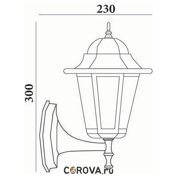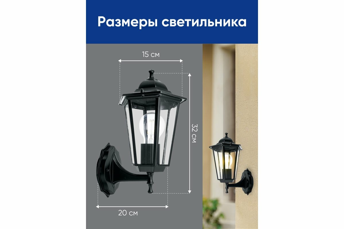 Светильник садово-парковый 6101/PL6101 шестигранный на стену вверх 60W E27 230V, черный, FERON 11052 (1 шт.)