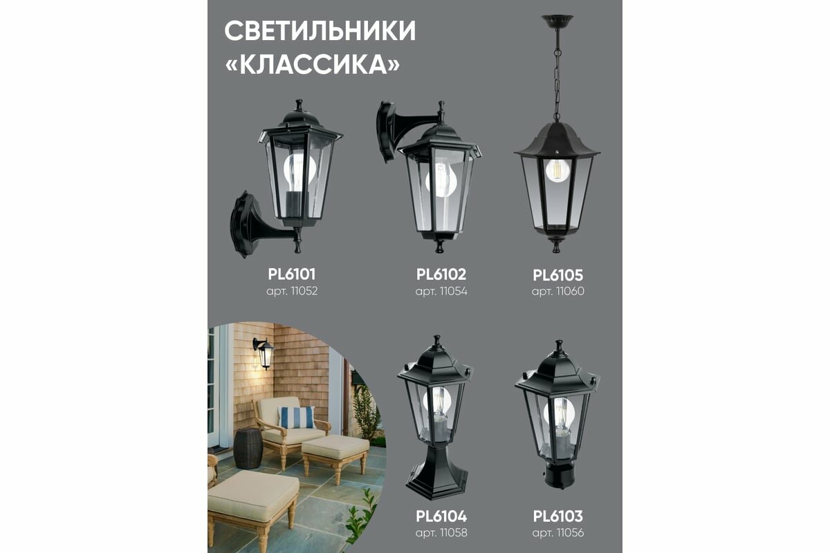 Купить Светильник садово-парковый, 60W 230V E27 черный, 6101/PL6101 (на стену вверх)