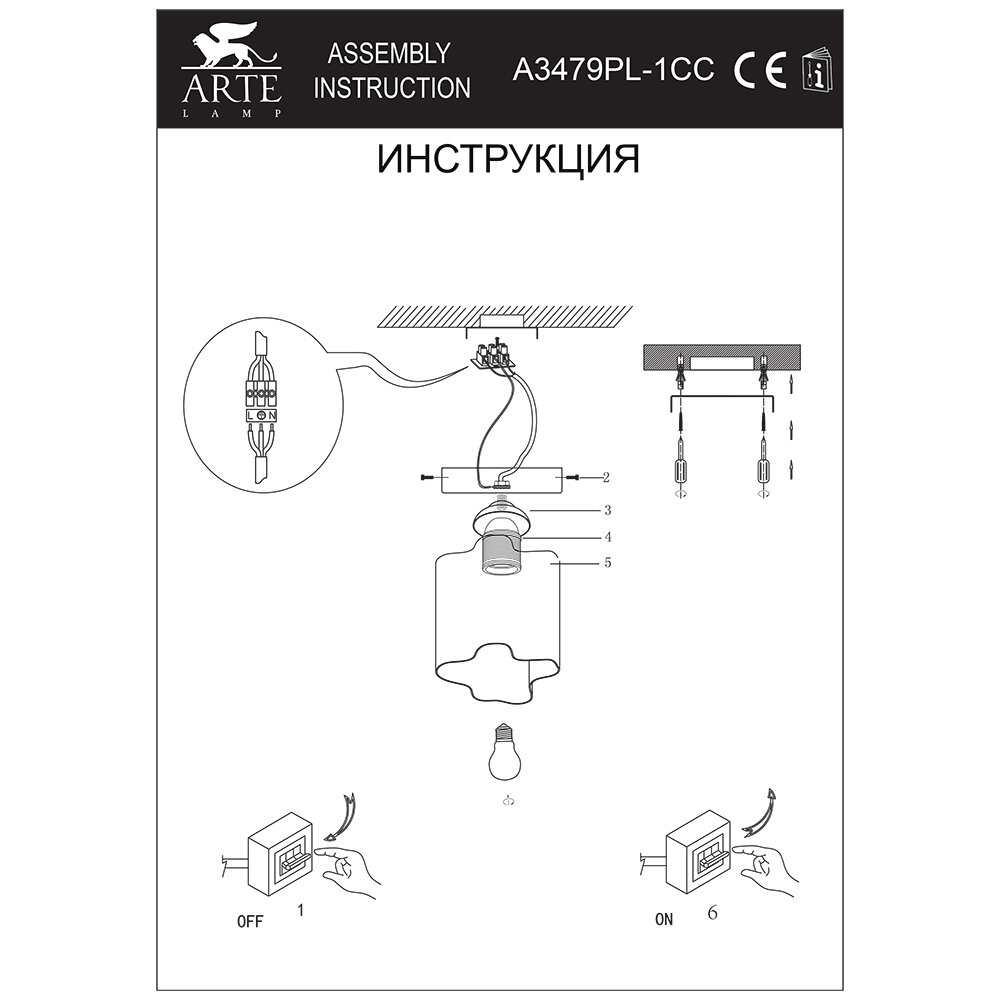 СохранитьПотолочный светильник Arte Lamp SERENATA A3479PL-1CC интересное: