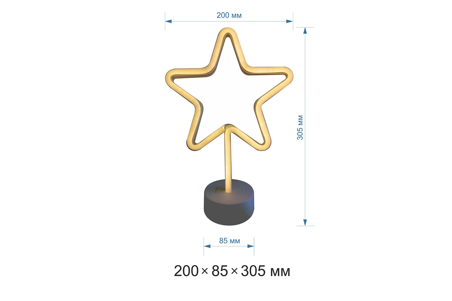 Светильник светодиодный неоновый "Звезда", 3 Вт, АБС-пластик, жёлтый,160 г.,200*85*305 мм, ТБ