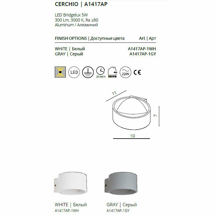 Настенный светодиодный светильник Arte Lamp Cerchio A1417AP-1GY