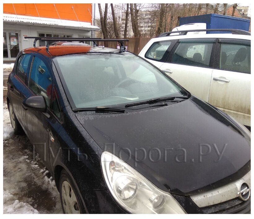 Багажник на крышу Delta Aero Polo New для Opel Corsa D 3/5 дв. хэтчбек 2006-2014 в штатное место, прямоугольные дуги интересное:
