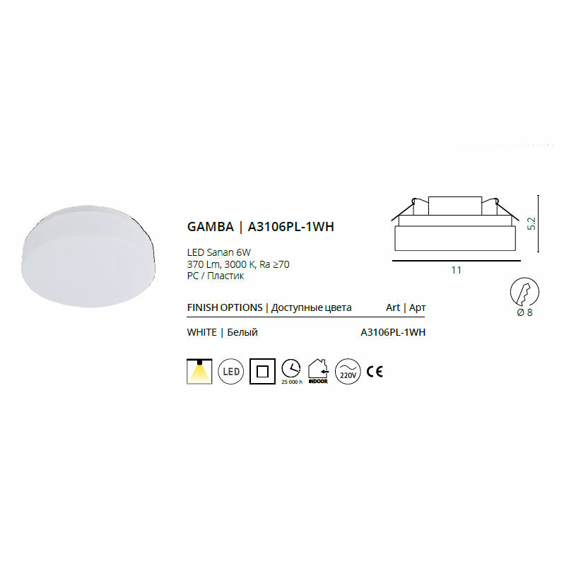 Потолочный светильник Arte Lamp GAMBA A3106PL-1WH