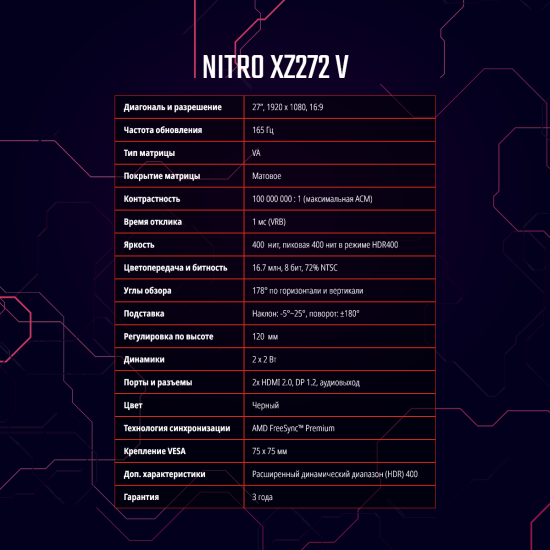 Монитор Acer Nitro XZ272Vbmiiphx (UM.HX0EE.V05)