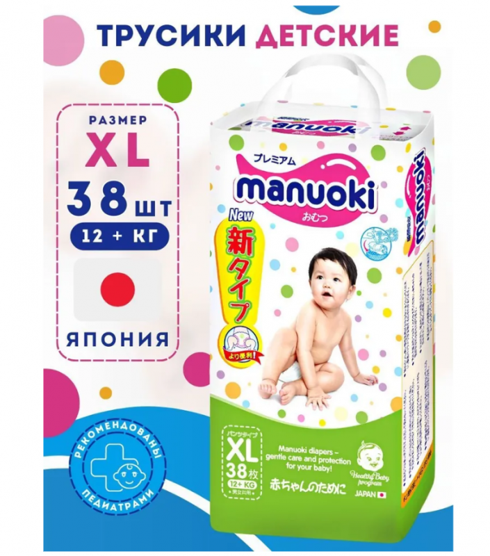 Трусики-подгузники MANUOKI, размер XL, 12+ кг, 38 шт интересное: