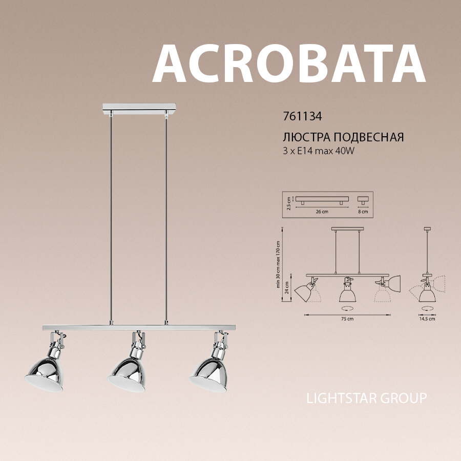 761134 Люстра ACROBATA 3х40W E14 хром, шт