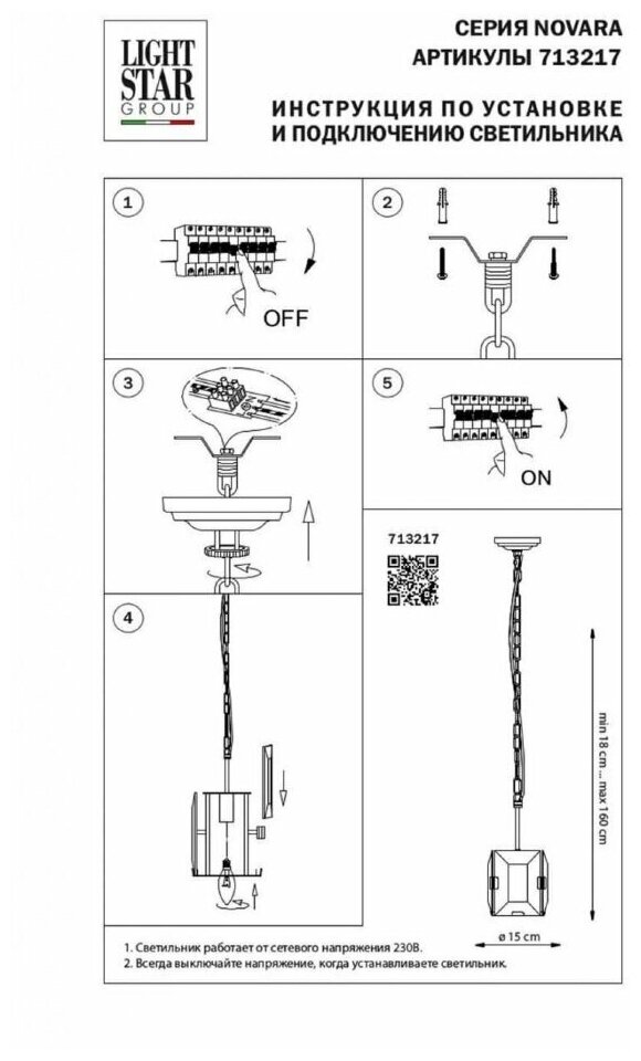 Светильник подвесной Lightstar Novara, 713217, 40W, E14 интересное: