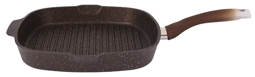 Сковорода-гриль квадратная 28 x 28 см с антипригарным покрытием (кофейный мрамор) с ручкой