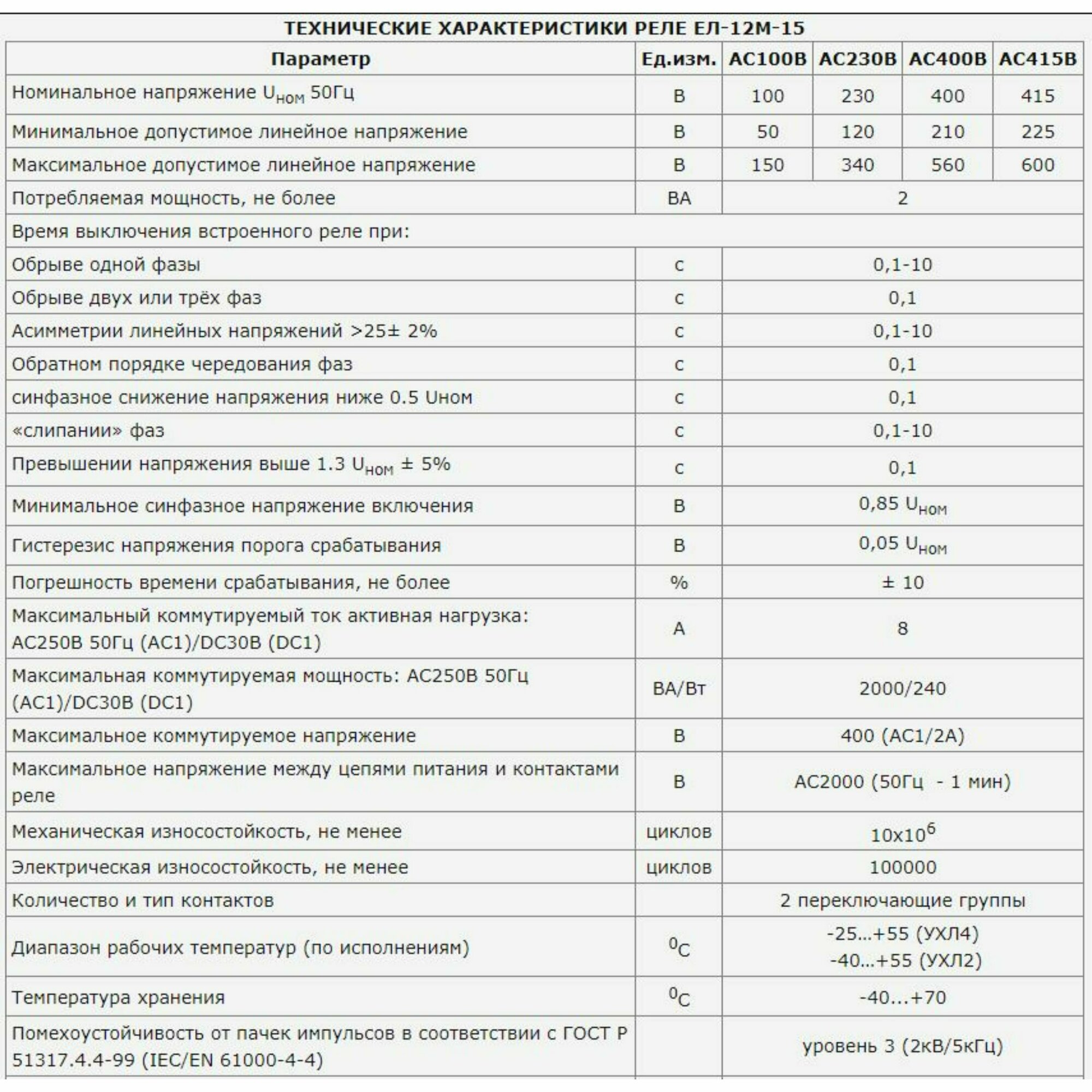 Купить Реле контроля напряжения 3ф ЕЛ-12М-15 УХЛ4 AC 400В задержка срабатывания 0.1...10с ток контактов исполнит. реле 8А 2п Меандр A8302-16934430