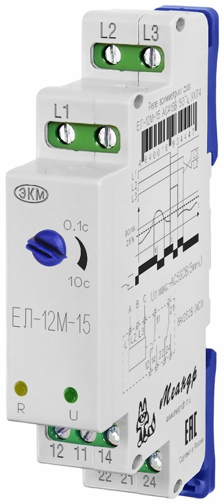 Реле контроля фаз ЕЛ-12М-15 400В 50Гц 1модуль DIN-рейка. 4640016934430 Меандр АО