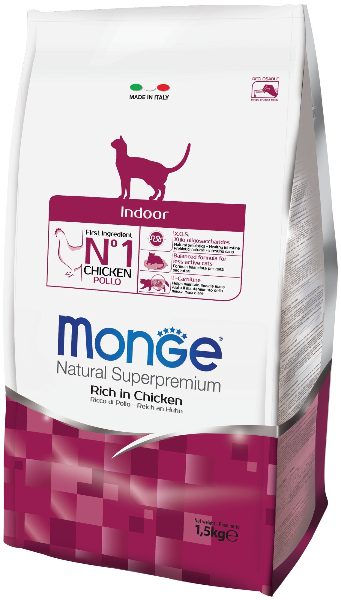 Сухой корм для кошек Monge Natural Superpremium Cat Indoor, для живущих в помещении, с курицей, 1.5 кг