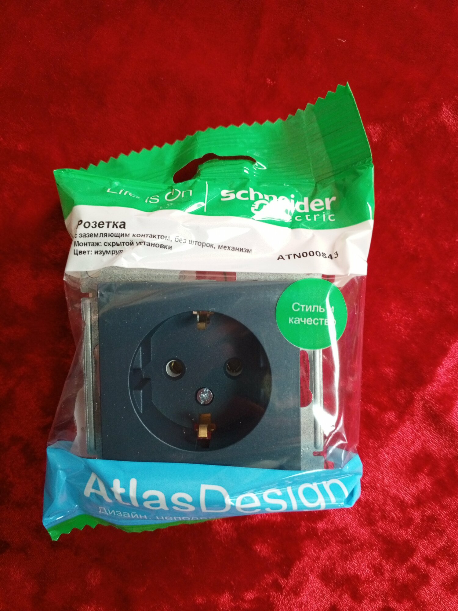 Розетка ATLASDESIGN с заземлением 16А механизм изумруд | код ATN000843 | Schneider Electric (5шт. в упак.)