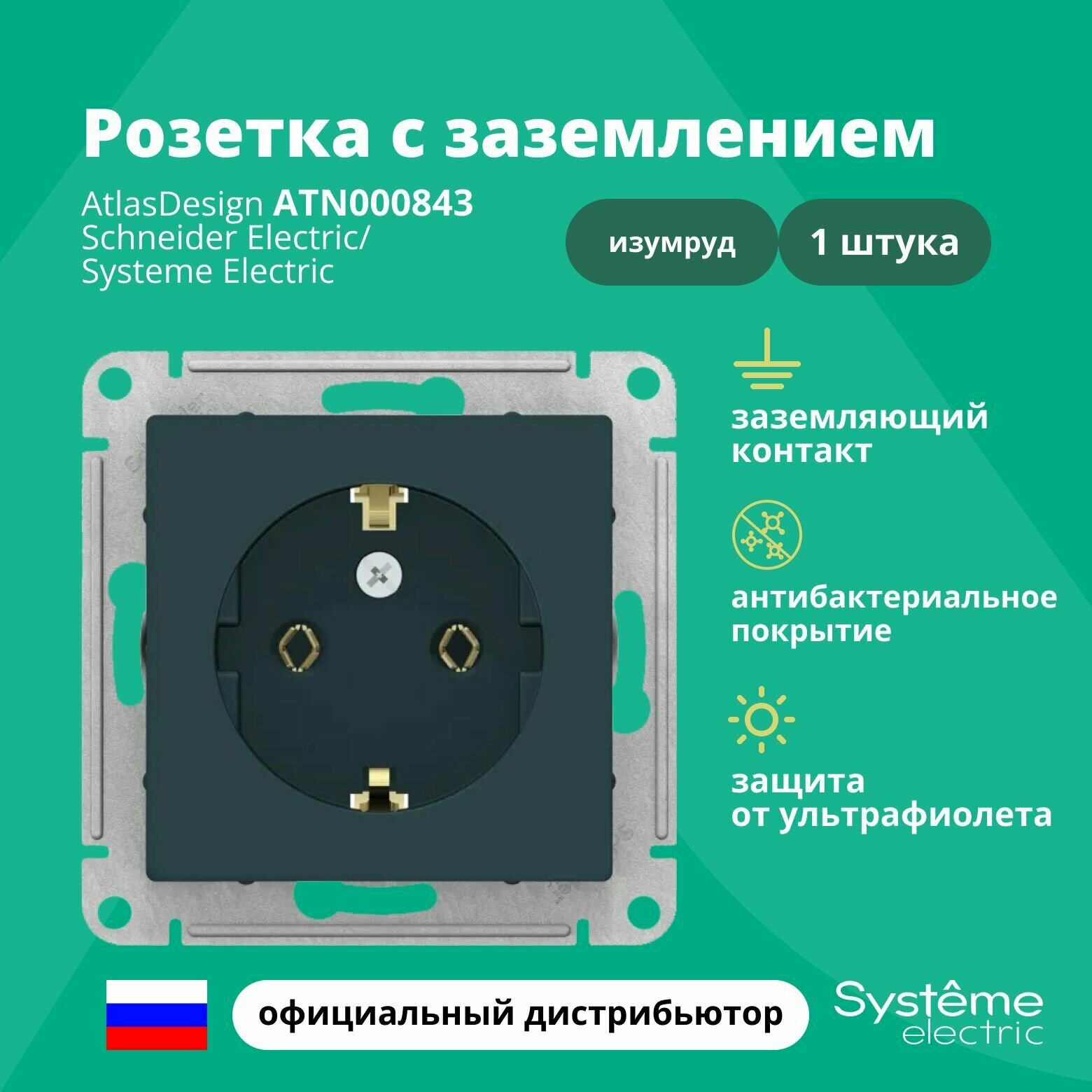 10 шт. Systeme Electric AtlasDesign Изумруд, Розетка c заземлением со шторками, 16А, механизм, ATN000845