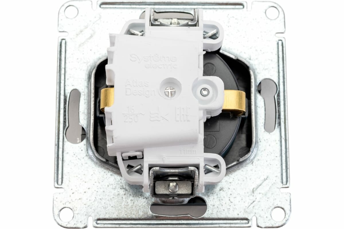 Механизм розетки Systeme Electric 1-м СП ATLAS DESIGN с заземлением 16А белый ATN000143