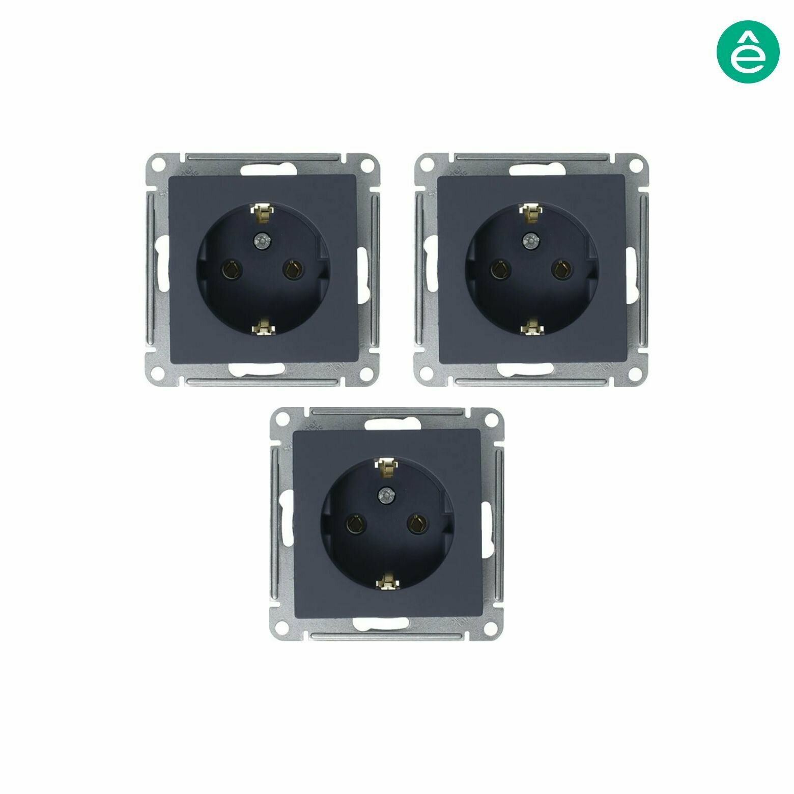 Schneider Electric AtlasDesign Розетка с заземлением, 16А, механизм розетки, цвет Черный (Карбон) ATN001043 10шт