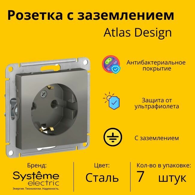 Розетка с заземлением, грифель Schneider Electric AtlasDesign (комплект 7шт)