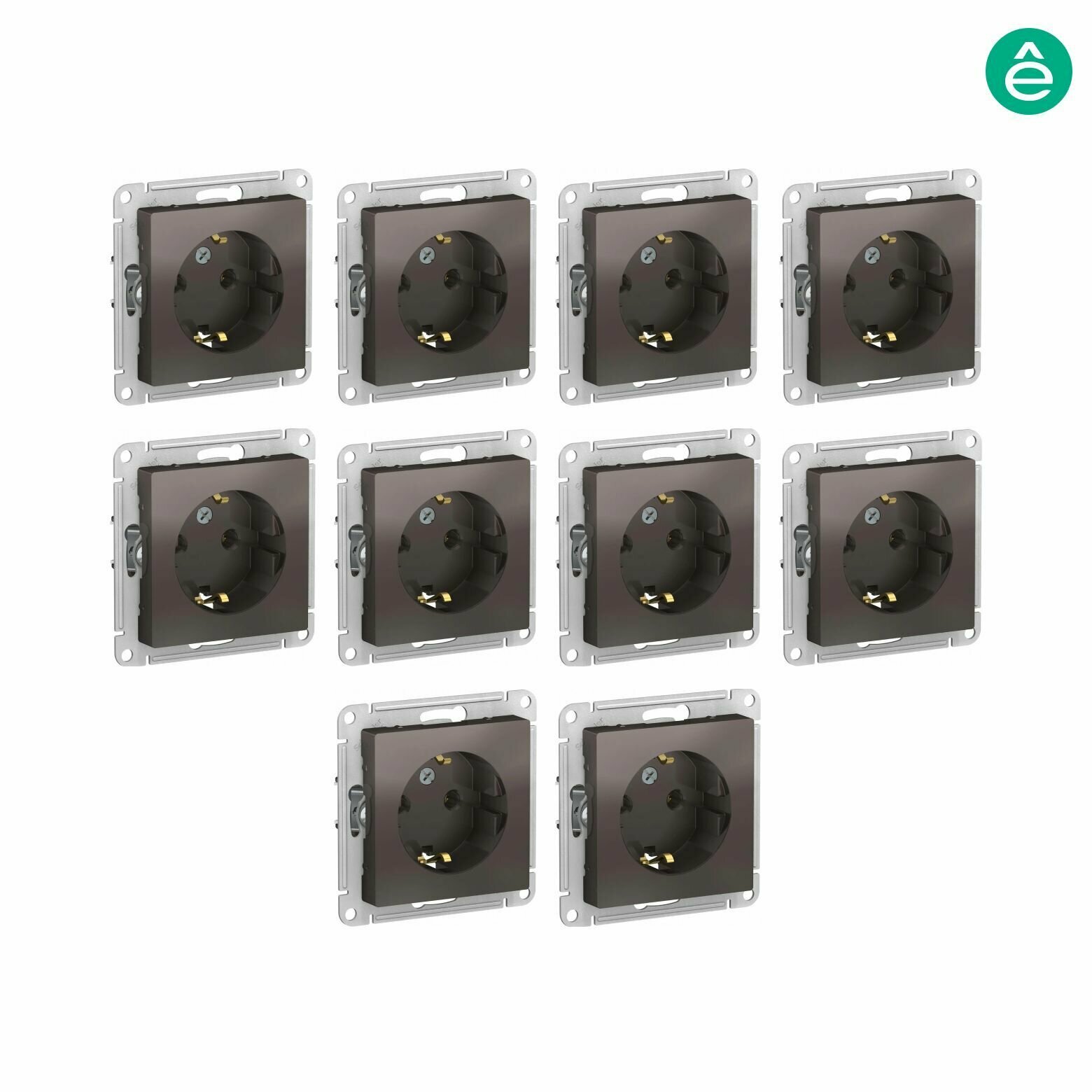 Розетка электрическая Schneider Atlas Design (Мокко) на винтовых зажимах в комплекте 10 шт.