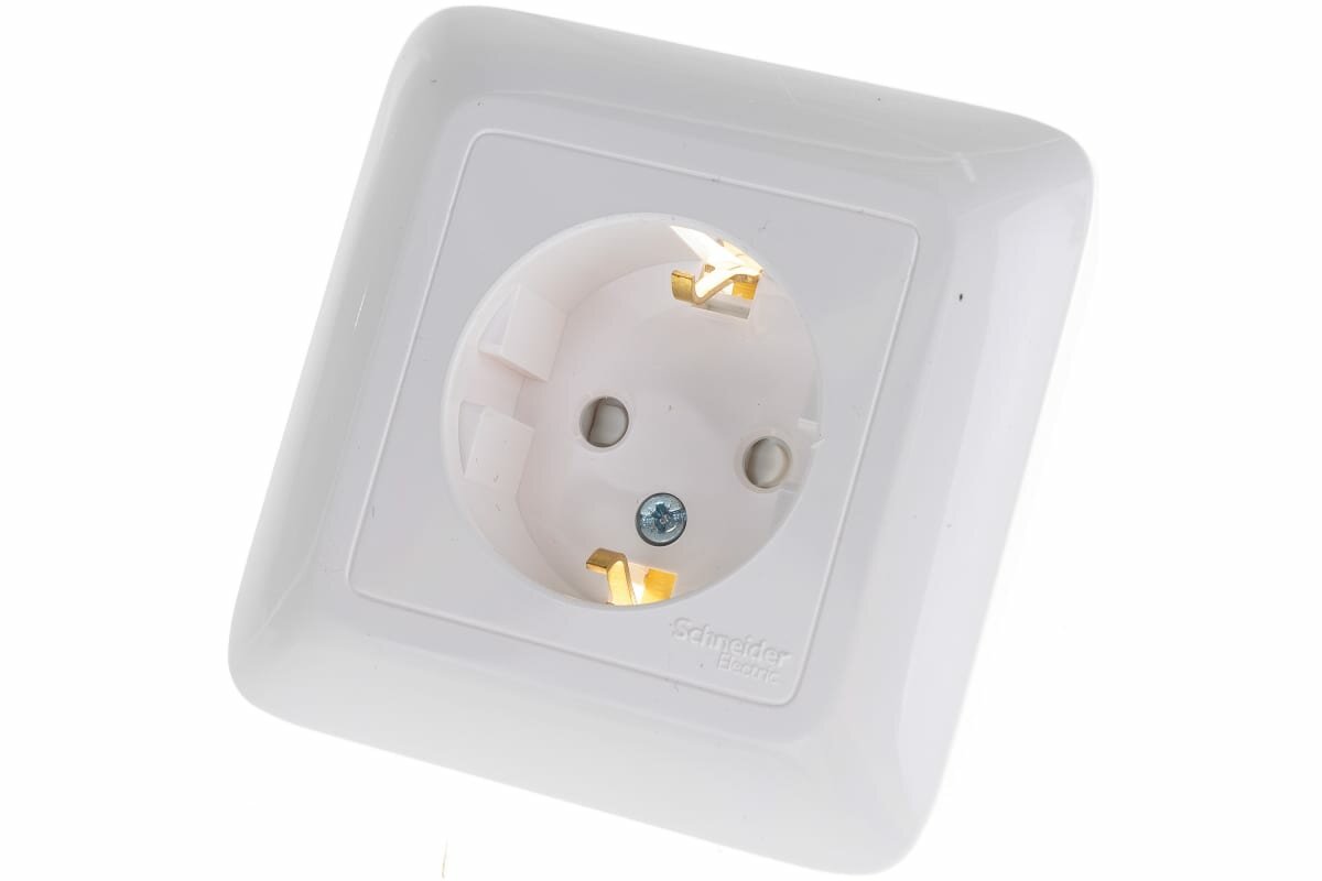Розетка Schneider Electric Wessen Прима белая, внутренняя, с заземлением, с защитными шторками, в сборке, в оптовой упаковке, 16 А