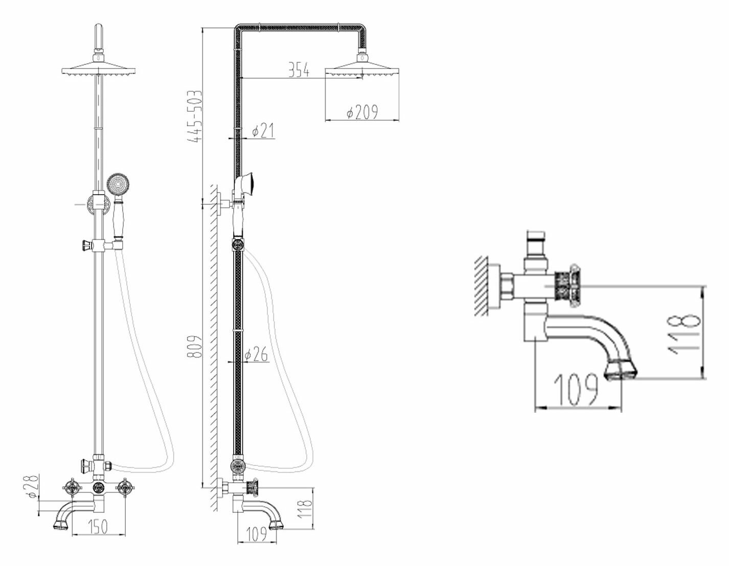 | Дополнительная информация | высота стойки для душа: 1087 мм; диаметр верхнего душа: 209 мм |
