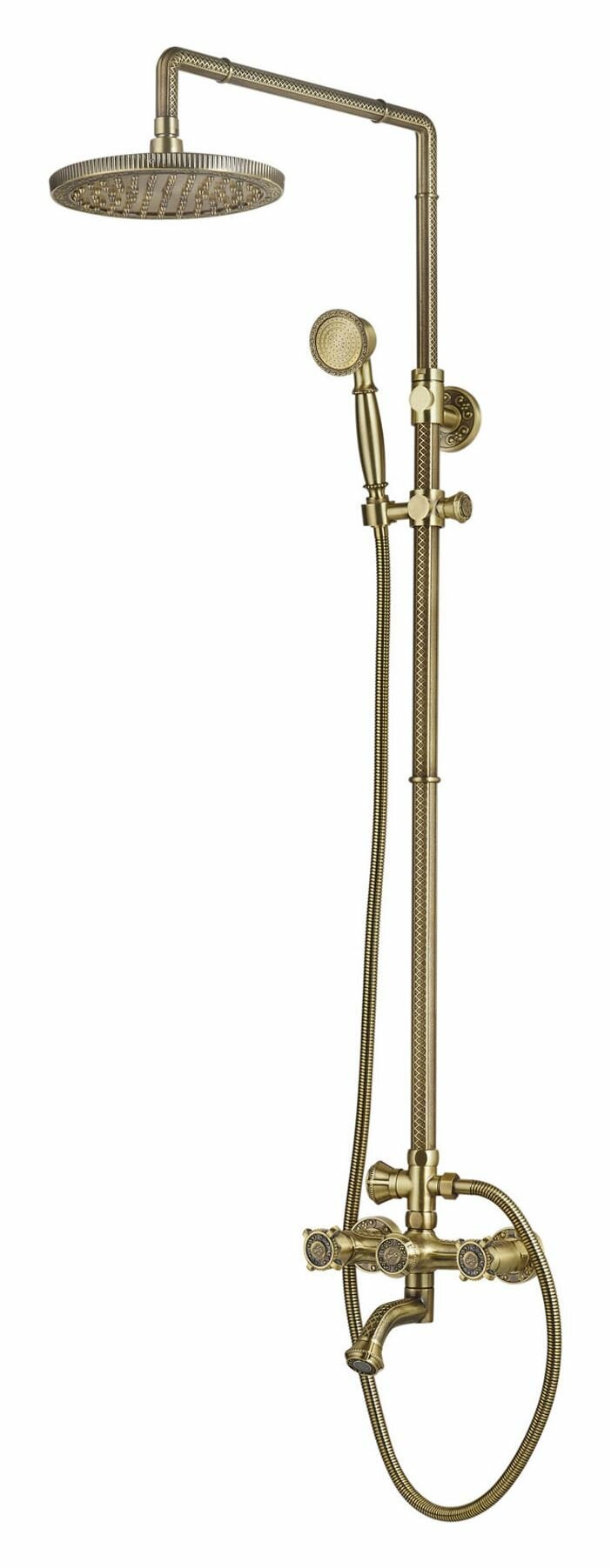 Душевая стойка Zorg Antic A 2002DS-BR, латунь бронзовая, ретро с орнаментом, с тропическим душем, вентильная