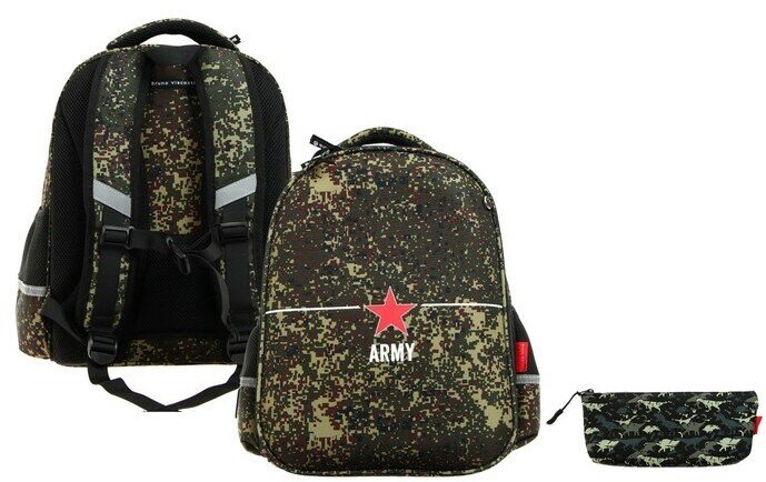 Рюкзак каркасный Bruno Visconti, 38 х 30 х 20 см + пенал, «Милитари. Army»