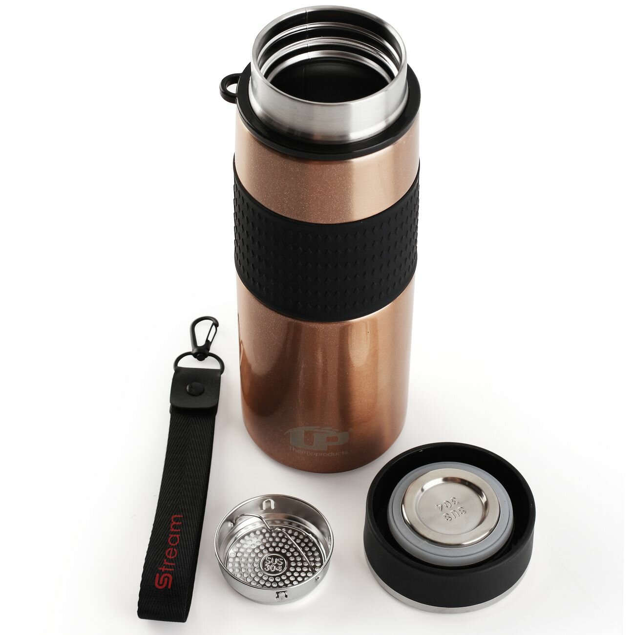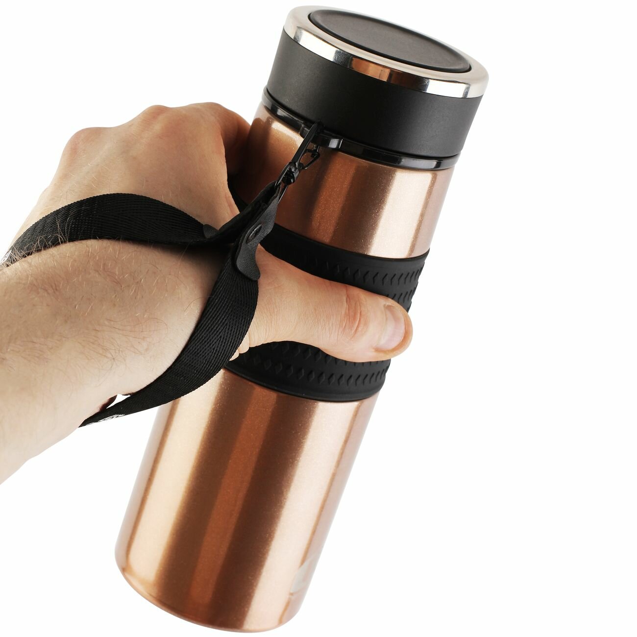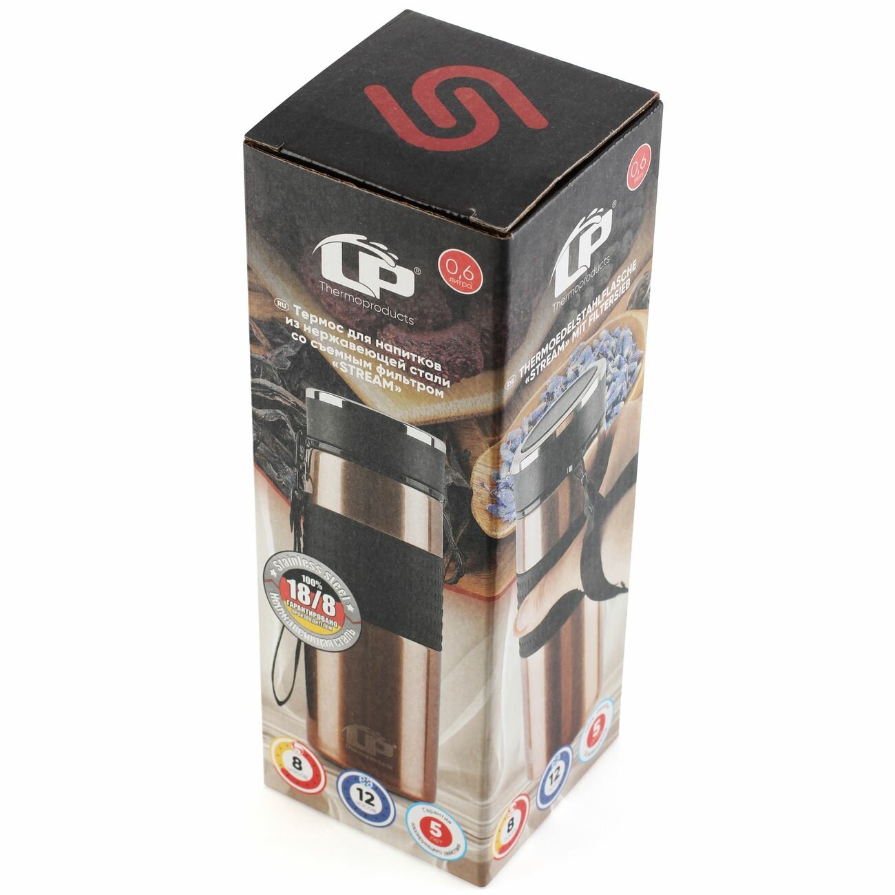 Термос стальной со съемным фильтром, ремешком для запястья и прорезиненным захватом на корпусе LP STREAM 0.6 Л