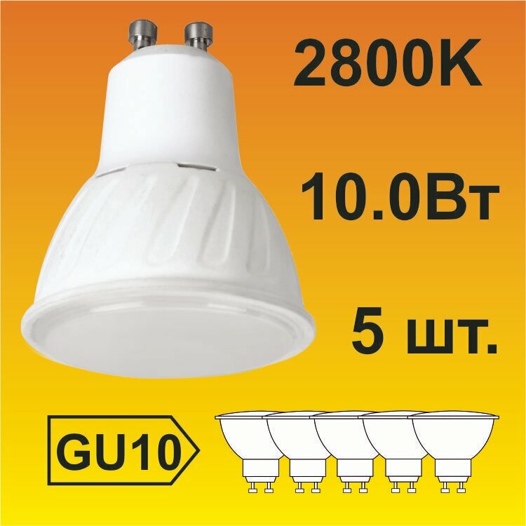 5 шт. Лампа Экола Reflector GU10, Ecola LED 10W, 2800K теплый белый свет, матовая MR16GU