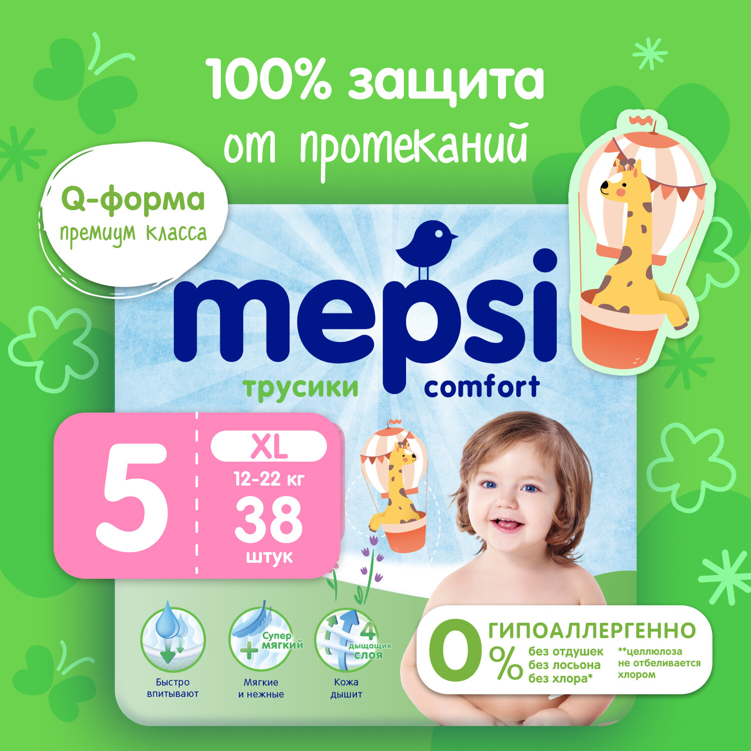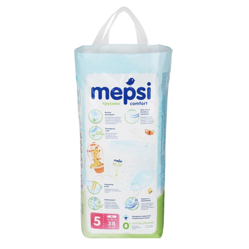 Трусики-подгузники Mepsi детские, 5 размер, XL (12-22кг), 38 шт