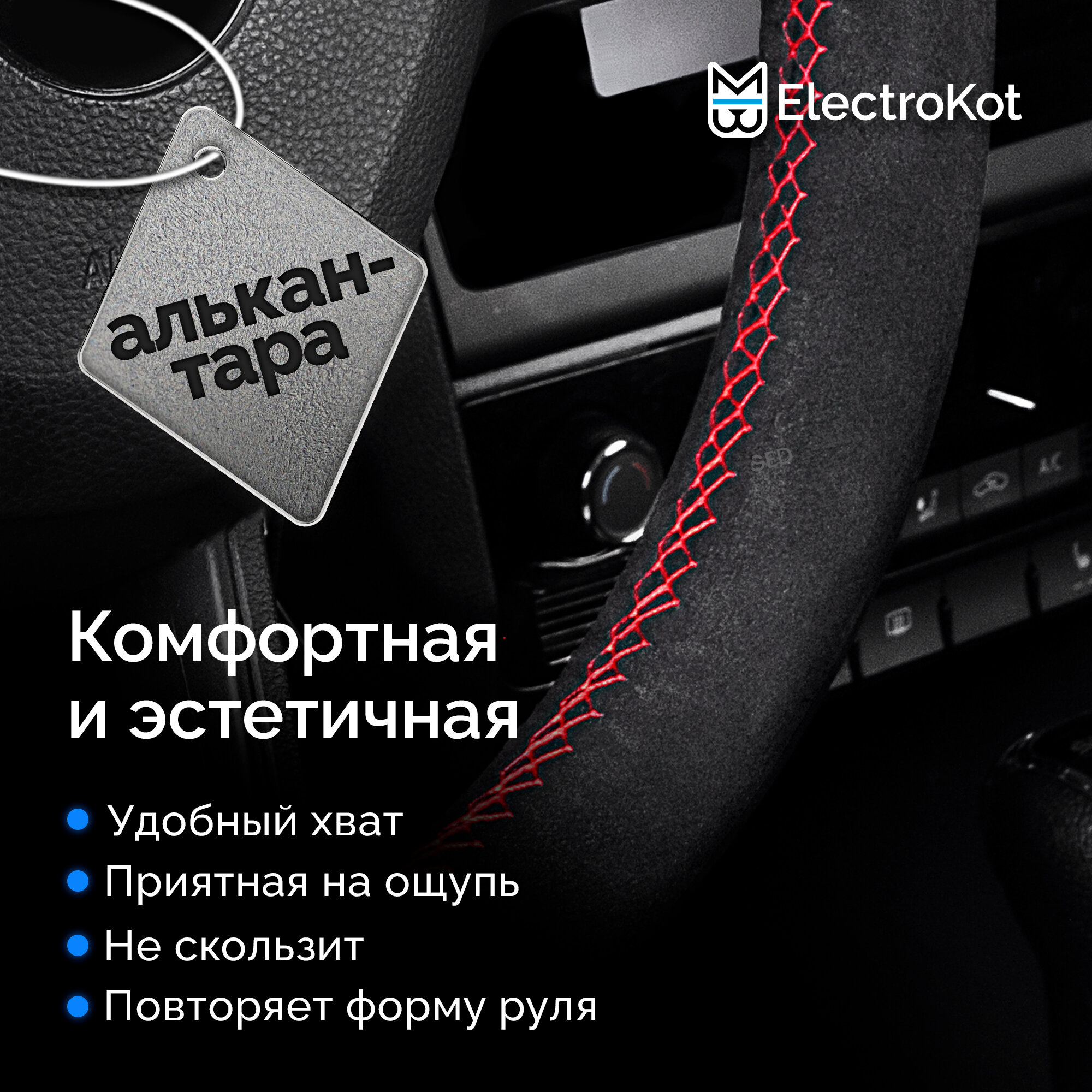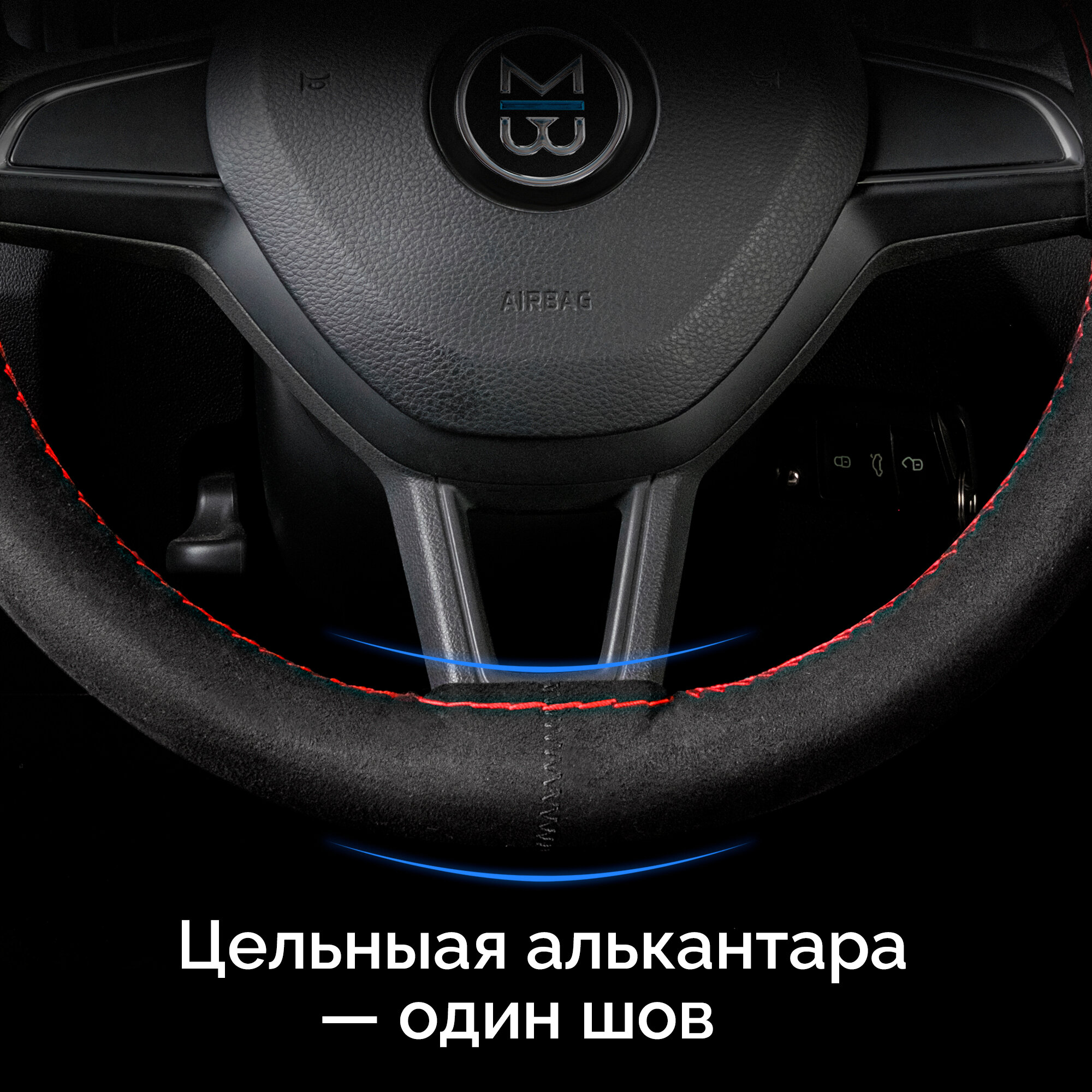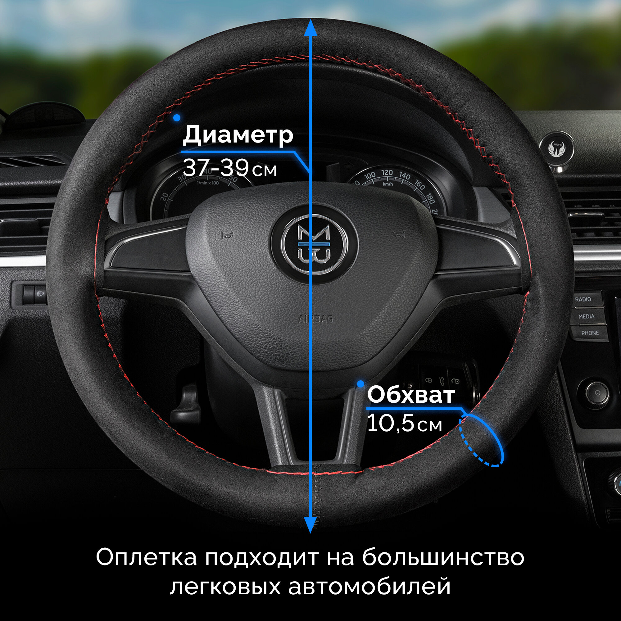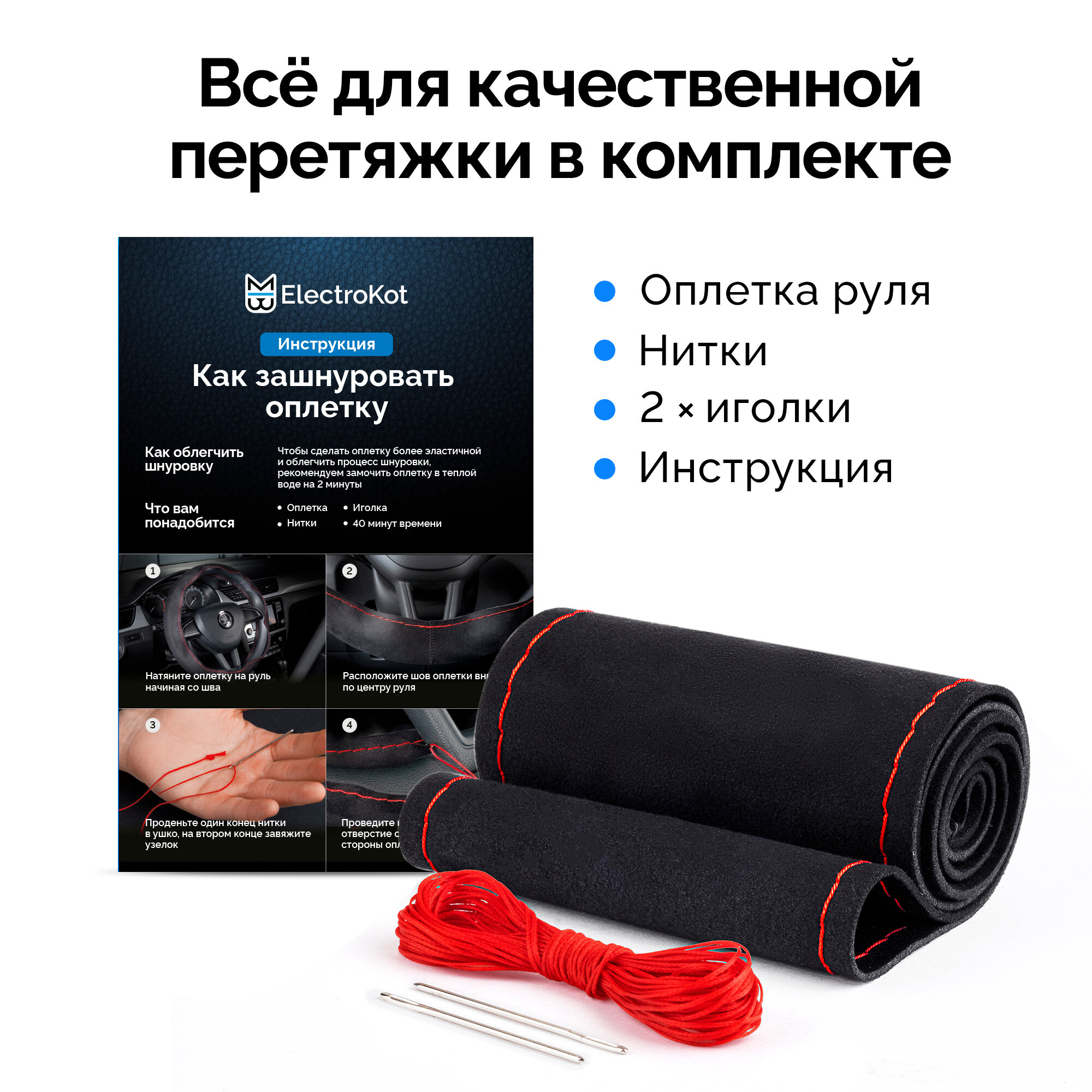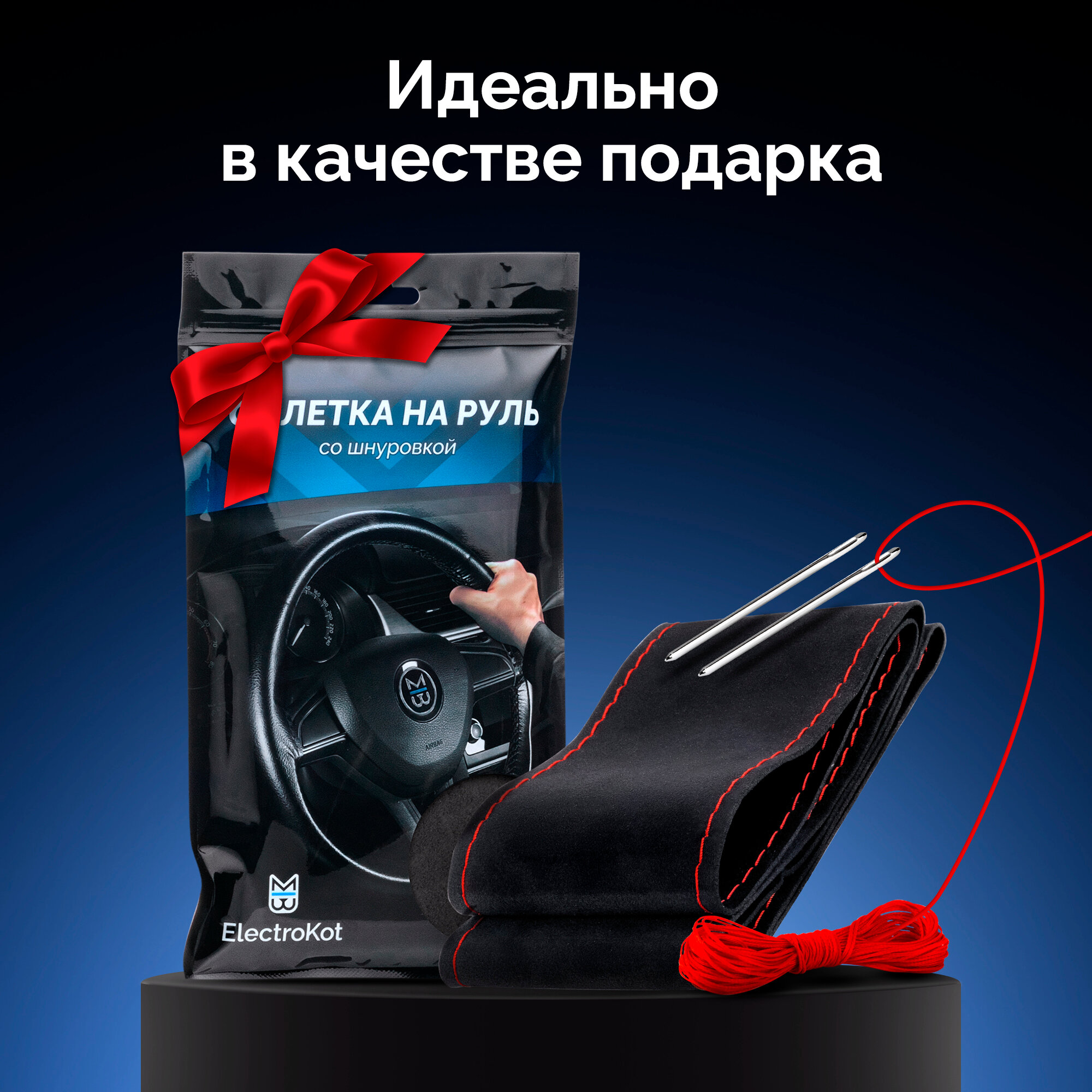 Оплетка на руль из алькантары со шнуровкой черная с красной нитью интересное: