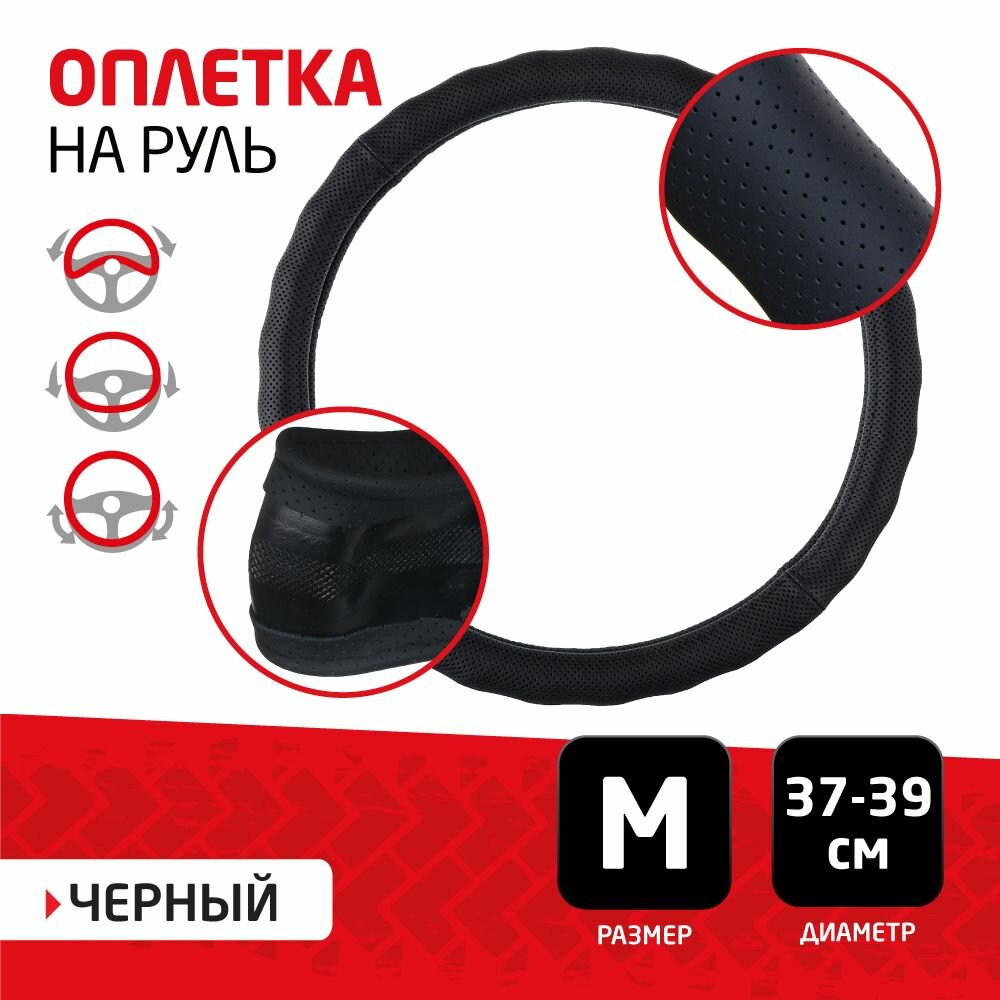 Оплетка на руль Хендай Сантафе 3 (Hyundai Santafe 3), М(37-39см), черный
