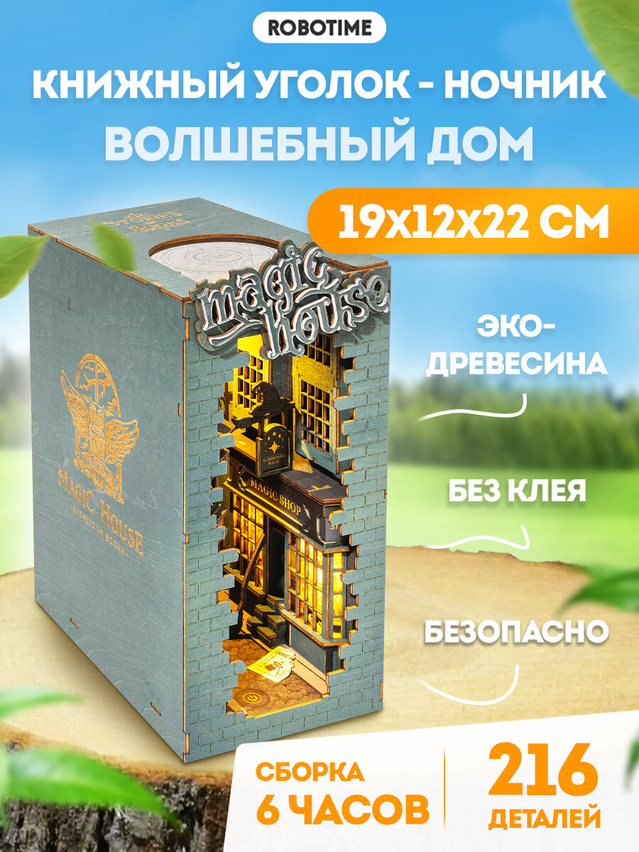 Деревянный 3D конструктор Robotime Rolife Книжный уголок - Волшебный дом 216 дет 18*11*24 см арт. TGB03