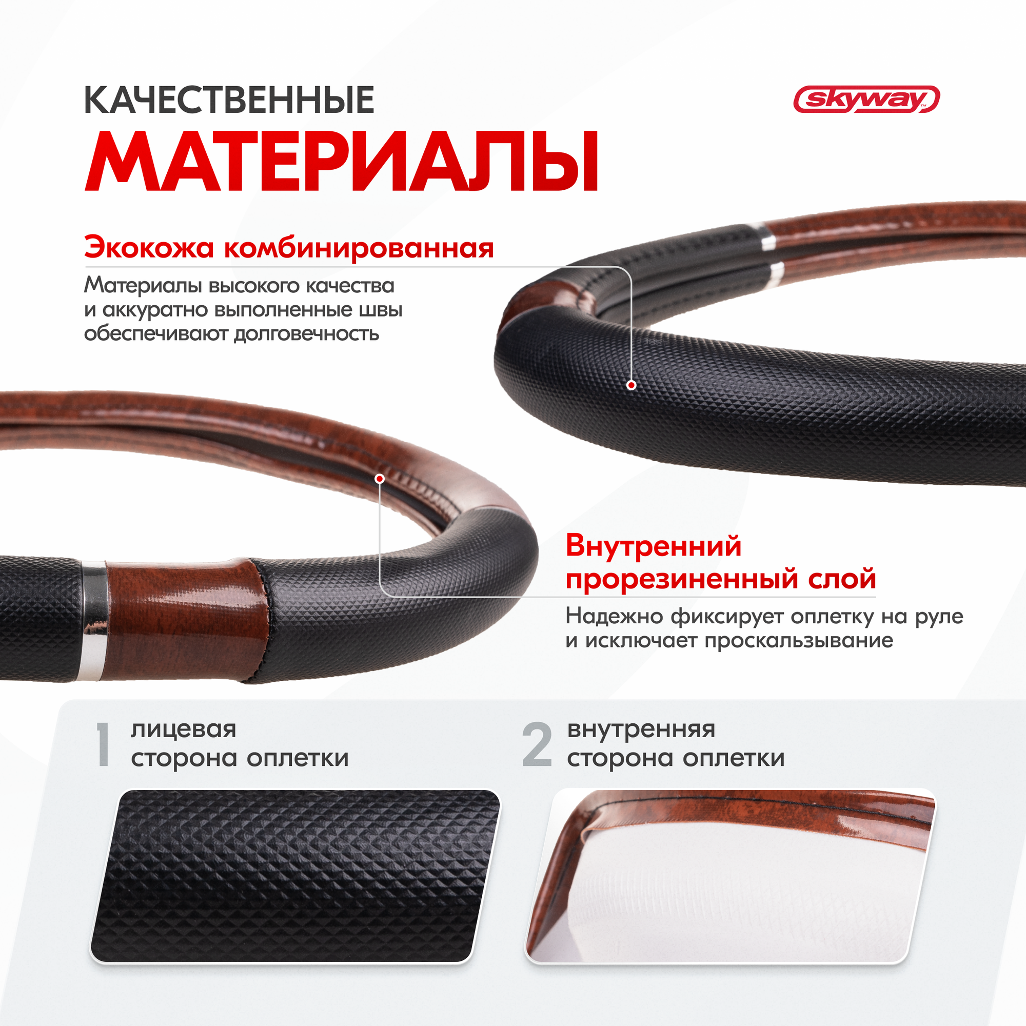 SKYWAY S01102058 Оплетка Wood-8 M Черно/Коричневая экокожа; SKYWAY интересное: